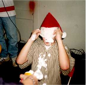 Matt Hoffman getting a "Santa Claus' " beard of shaving cream